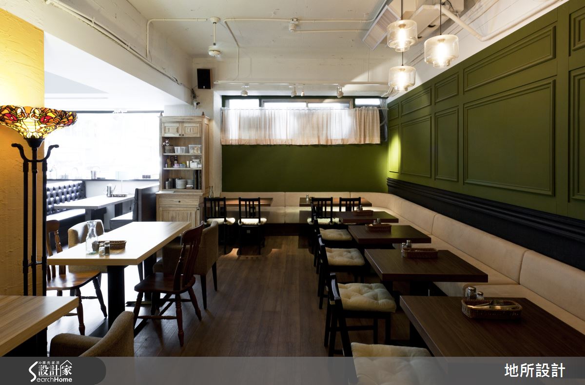 步入店內,牆面分別刷上橄欖綠、檸檬黃,延續義大利鄉村將食物色彩帶進空間的傳統。另外,取代格局的束縛感,設計師利用桌椅佈置、線板,和地面的義大利花磚,巧妙地將空間定義出不同的氛圍。鄰近窗邊的座位有著絕佳視野,爛漫的陽光灑落在復古風格的深咖啡釘扣軟椅,奢侈地享受美好街景;中心地帶以淺色花磚與木桌椅營造明亮感,彷彿來到南歐小餐館;店內深處則利用古典線板與復古燈光,營造優雅而浪漫的用餐氛圍。