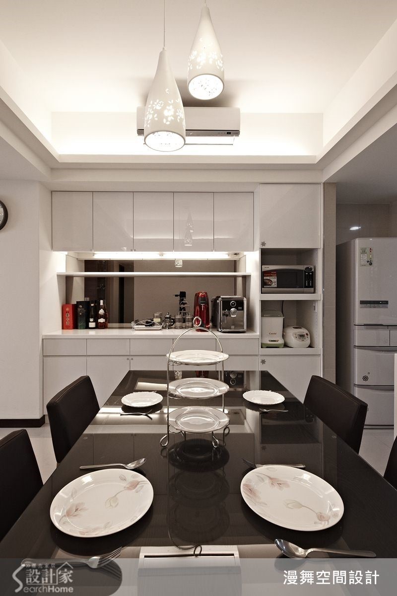 廚房與餐廳採開放式設計,運用黑白色調對比構築空間層次,輔以豐富的收納與燈光配置,營造現代優雅的餐敘氛圍。